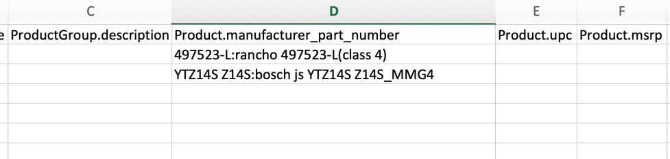 If you need an internal SKU that differs from the public-facing MPN, use a colon (: ) as a delimiter in the Manufacturer Part Number field. Everything before the colon is the public MPN shown on marketplace listings; everything after is your internal reference, visible only in Ecommerce order records.