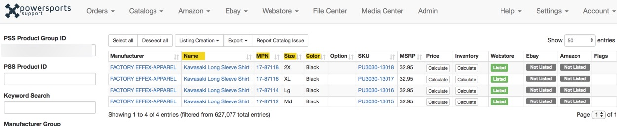 Private Catalog products appear on your webstore alongside Aftermarket products and can also be listed on eBay and Amazon marketplaces.