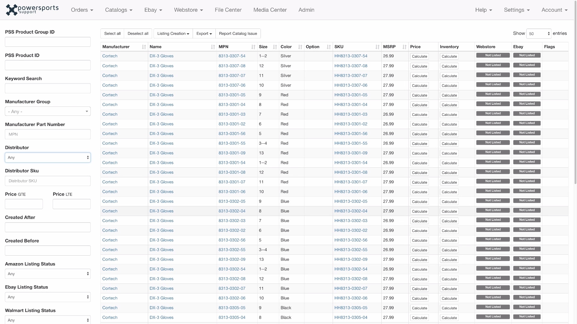 We recommend taking a brand-by-brand approach to start with while utilizing the robust filtering options that PSS provides on the left-hand navigation menu within the catalog. Manufacturer Group, Price and eBay Listing Status, should all be filters that you begin using on day one.